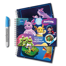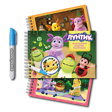 Новинка! 78130 Водная раскраска с маркером Лунтик, 5 рисунков, 12 страниц, размер 21*14 см, бумага 210