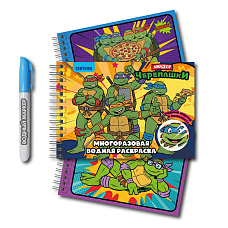 Новинка! 78606 Водная раскраска с маркером Ниндзя черепашки, 5 рисунков, 12 страниц, размер 21*14 см, бумага 210 г
