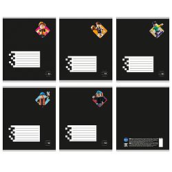 Обложка - мелованный картон. Высокое качество цветопередачи обеспечивает яркое и четкое нанесение рисунка. Внутренний блок с разлиновкой в линейку/клетку с полями и обложка скреплены с помощью металлической скобы. Объем - 12 листов. Формат - А5. Дизайн в ассортименте.