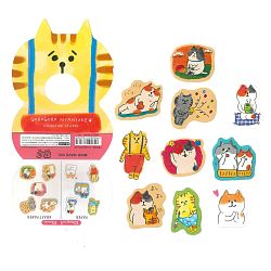 Наклейки упакованы в пакетик и приклеены к упаковке в виде симпатичных кошачьих мордашек.
