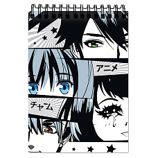 74165 Блокнот Аниме, формат А7, размер 65*98 мм, клетка, 40 листов на скрепке, блок-офсет, целлюлозный картон 200 гр/м2е